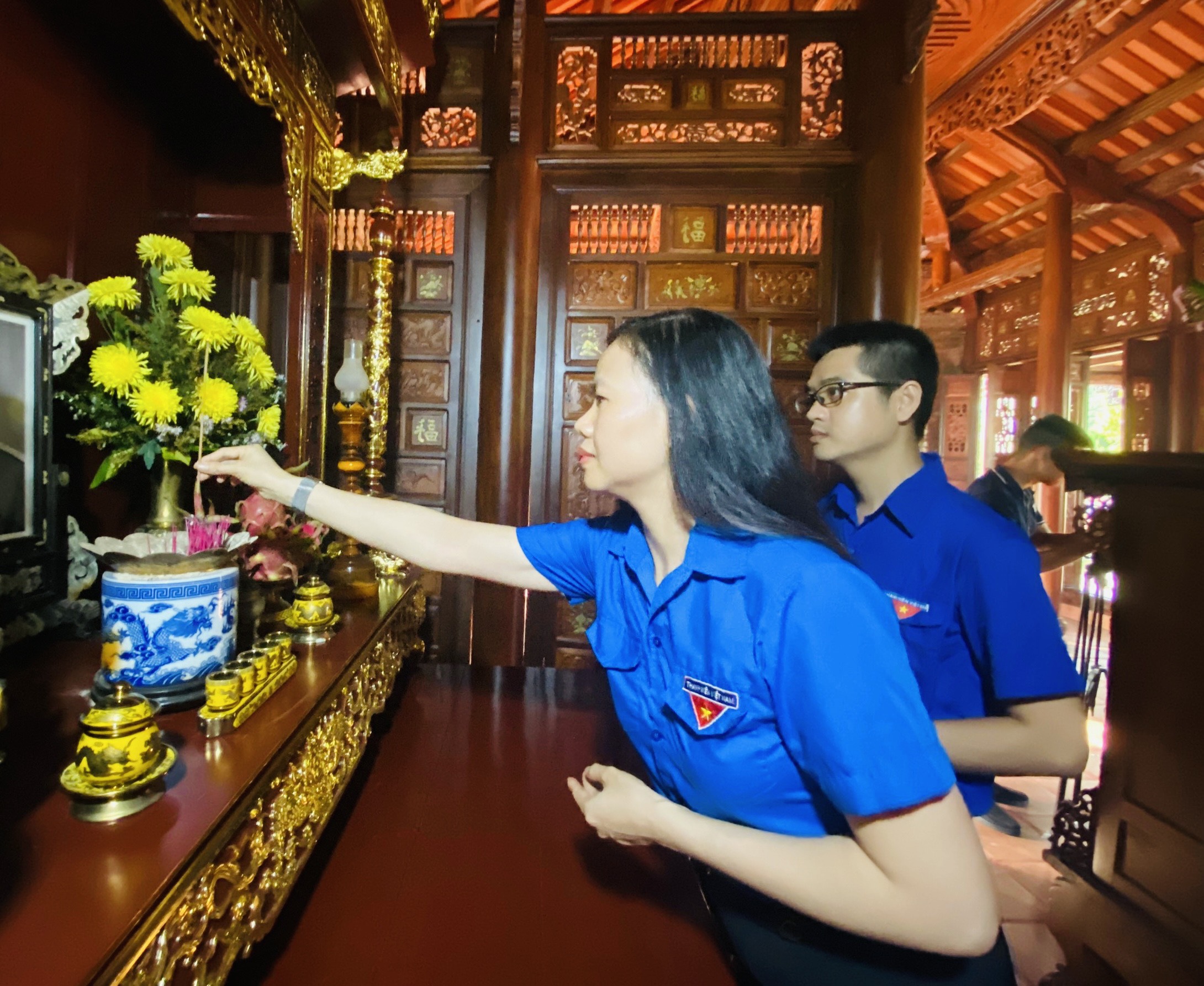 Bà Trương Thị Diệu – UVBCH Tỉnh Đoàn, Phó Bí thư Thường trực Đoàn Khối Cơ quan và Doanh nghiệp tỉnh TT Huế dâng nén hương tưởng nhớ Đại tướng.