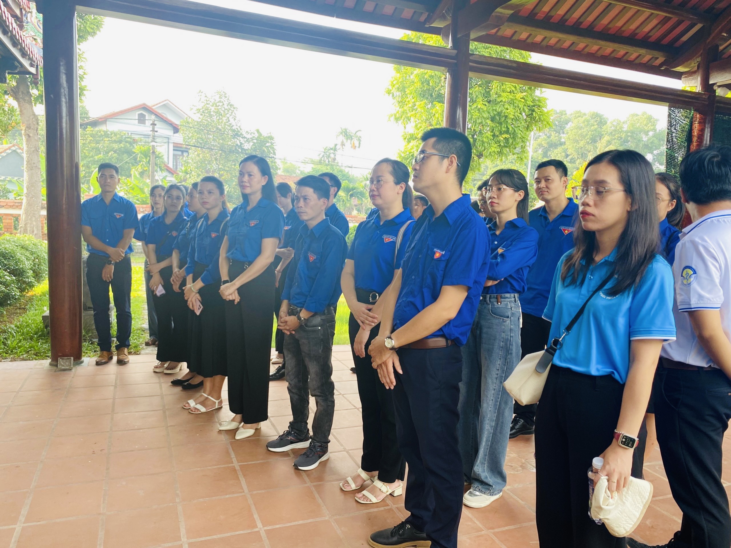 Các bạn Đoàn Thanh niên đang lắng nghe tiểu sử về cuộc đời và sự nghiệp của Đại tướng Lê Đức Anh.