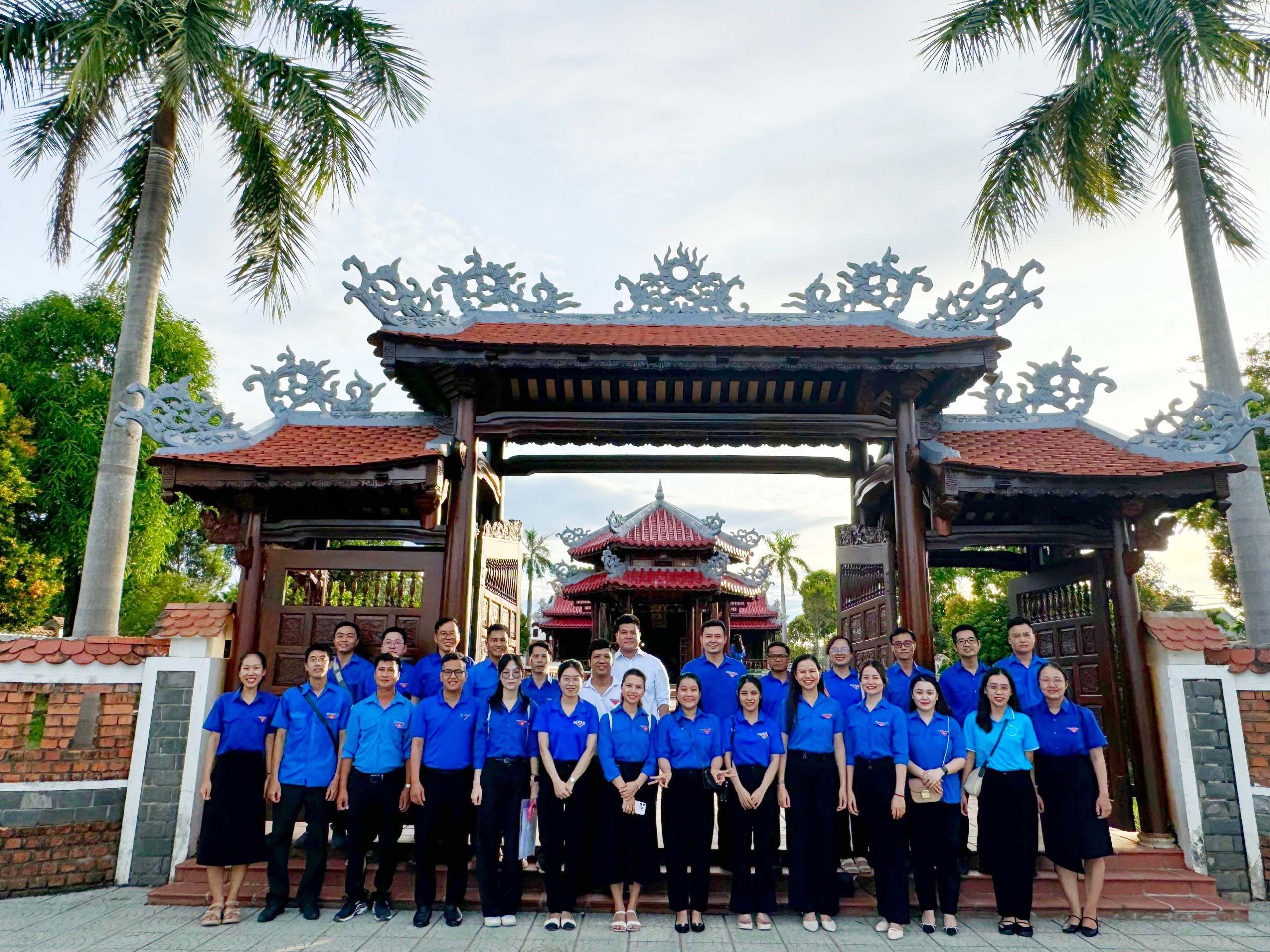 Đoàn chụp ảnh trước cổng Thư viện Đại tướng Lê Đức Anh.