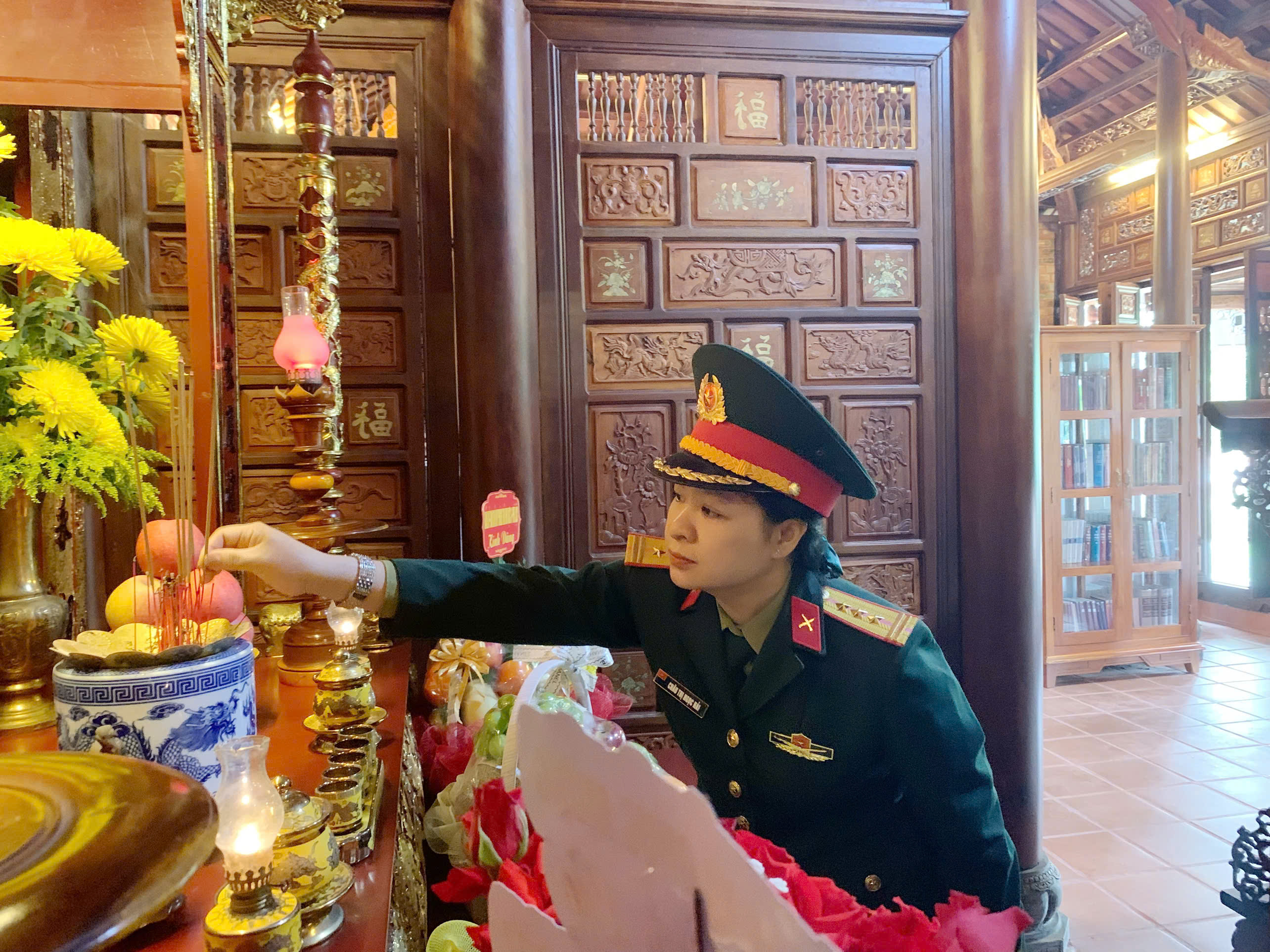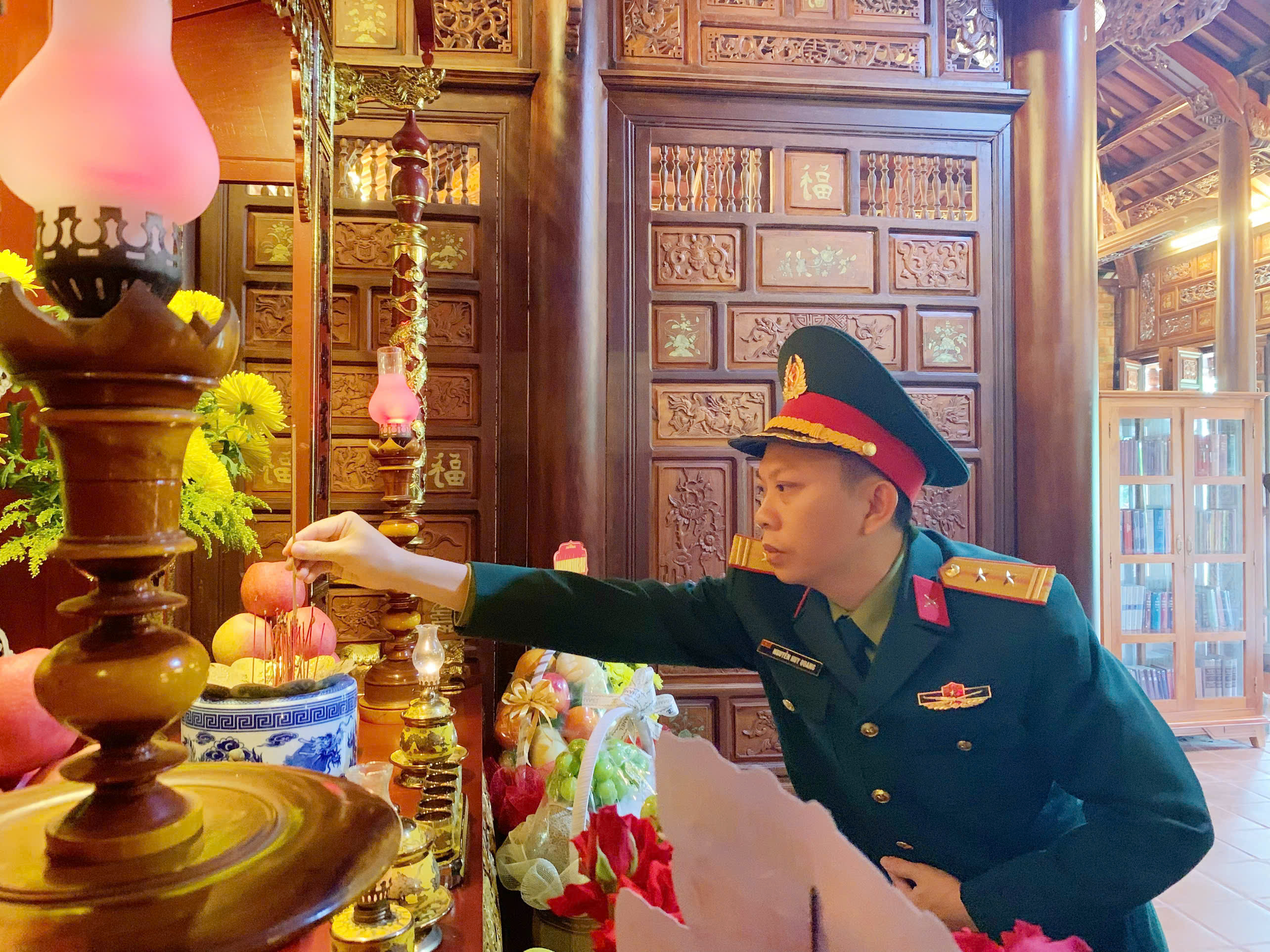 Trung tá Nguyễn Huy Quang – giám đốc chi nhánh Viettel Huế dâng hương tưởng nhớ Đại tướng Lê Đức Anh